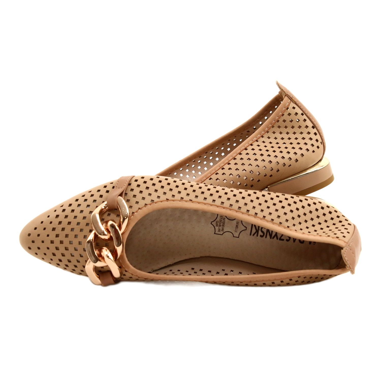 M.Daszyński M.Daszyński Ażurowe Baleriny z Łańcuszkiem Daszyński SA201-6 Beż-złoty beżowy