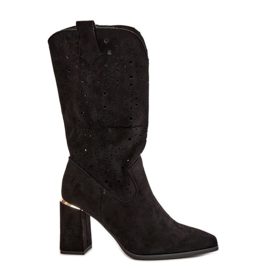 Inna marka Ażurowe Botki Damskie Na Słupku Z Noskami W Szpic Eko Zamszowe Czarne Nevithra