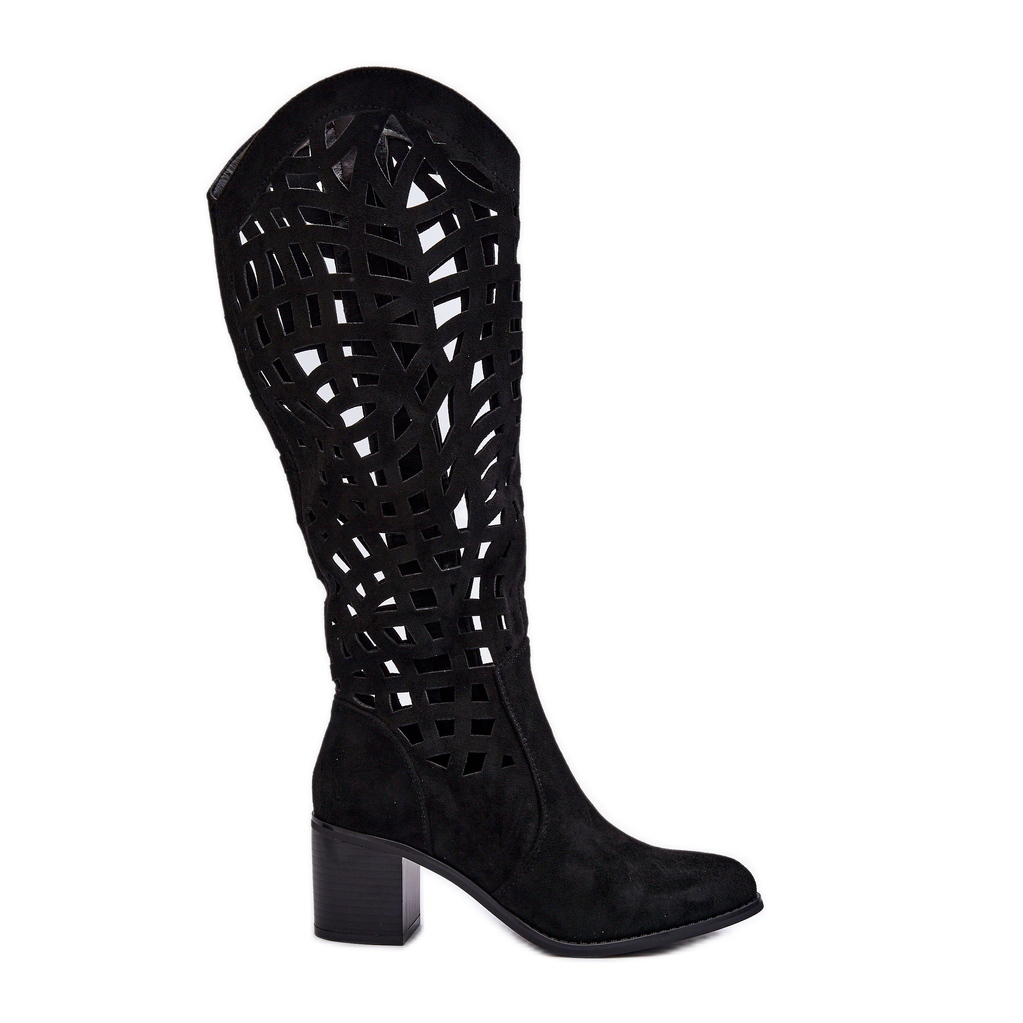 **Ażurowe Kozaki Na Obcasie Czarne Pinkema**
