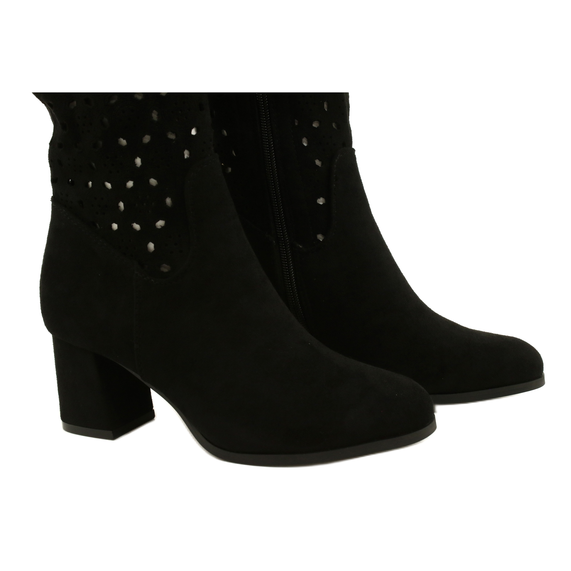 M.Daszyński M.Daszyński Ażurowe Kozaki Na Słupku Czarne SA156-10