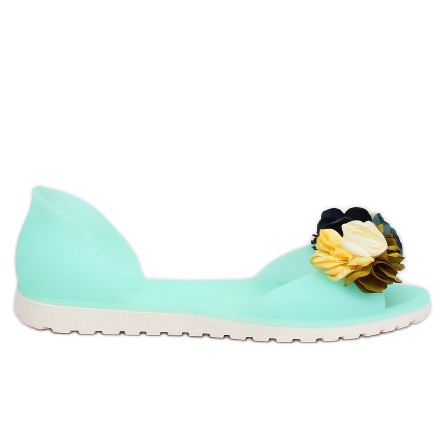 Balerinki meliski miętowe SE-9613 Green to idealny wybór dla kobiet ceniących sobie zarówno komfort, jak i styl. Te gumowe balerinki open-toe są zdobione urokliwymi kwiatami, które dodają im niezwykłego charakteru. Cudowny zielony kolor przyciąga wzrok i sprawia, że nie można przejść obok nich obojętnie.