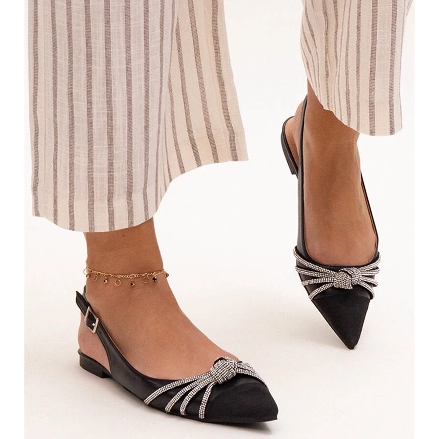 Inna marka Balerinki ze szpiczastym noskiem i cyrkoniami Sellar czarne