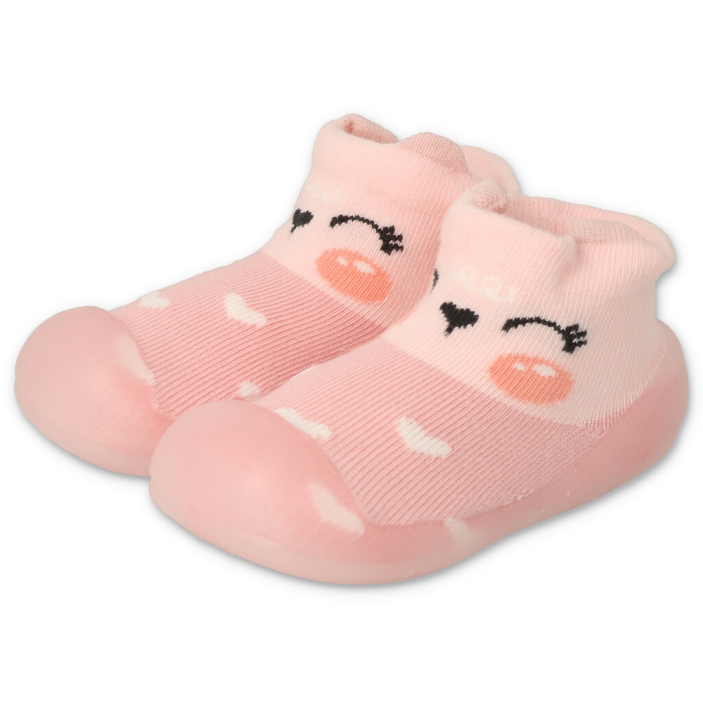 Niechodki te składają się z elastycznej skarpety, która perfekcyjnie otula stopę, oraz antypoślizgowej podeszwy, która zapewnia stabilność i bezpieczeństwo. Ich przemyślana konstrukcja sprawia, że nie obciążają stopy dziecka ani jej nie uciskają, co jest wyjątkowo istotne w tak wczesnym etapie rozwoju. Kształt bucika gwarantuje, że nie zsuwają się podczas ruchów malucha, co zapewnia komfort przez cały czas noszenia.