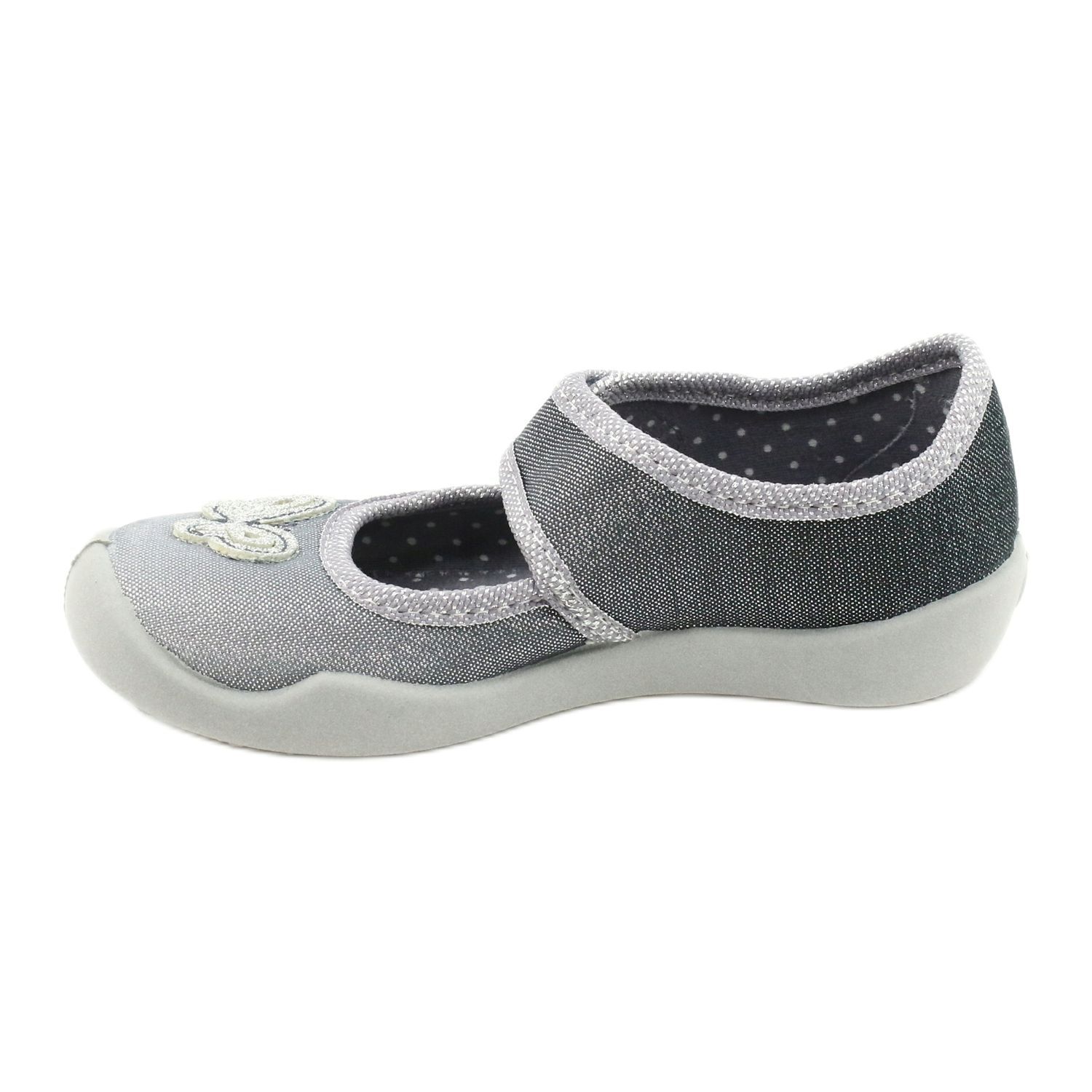 Na cholewce bucików znajduje się wyhaftowany motylek, który dodaje całości niezwykłego uroku i sprawia, że model ten z pewnością zachwyci najmłodszych. Szara kolorystyka z elementami srebrnymi sprawia, że buciki są uniwersalne i będą pasować do wielu stylizacji, zarówno na co dzień, jak i na specjalne okazje.