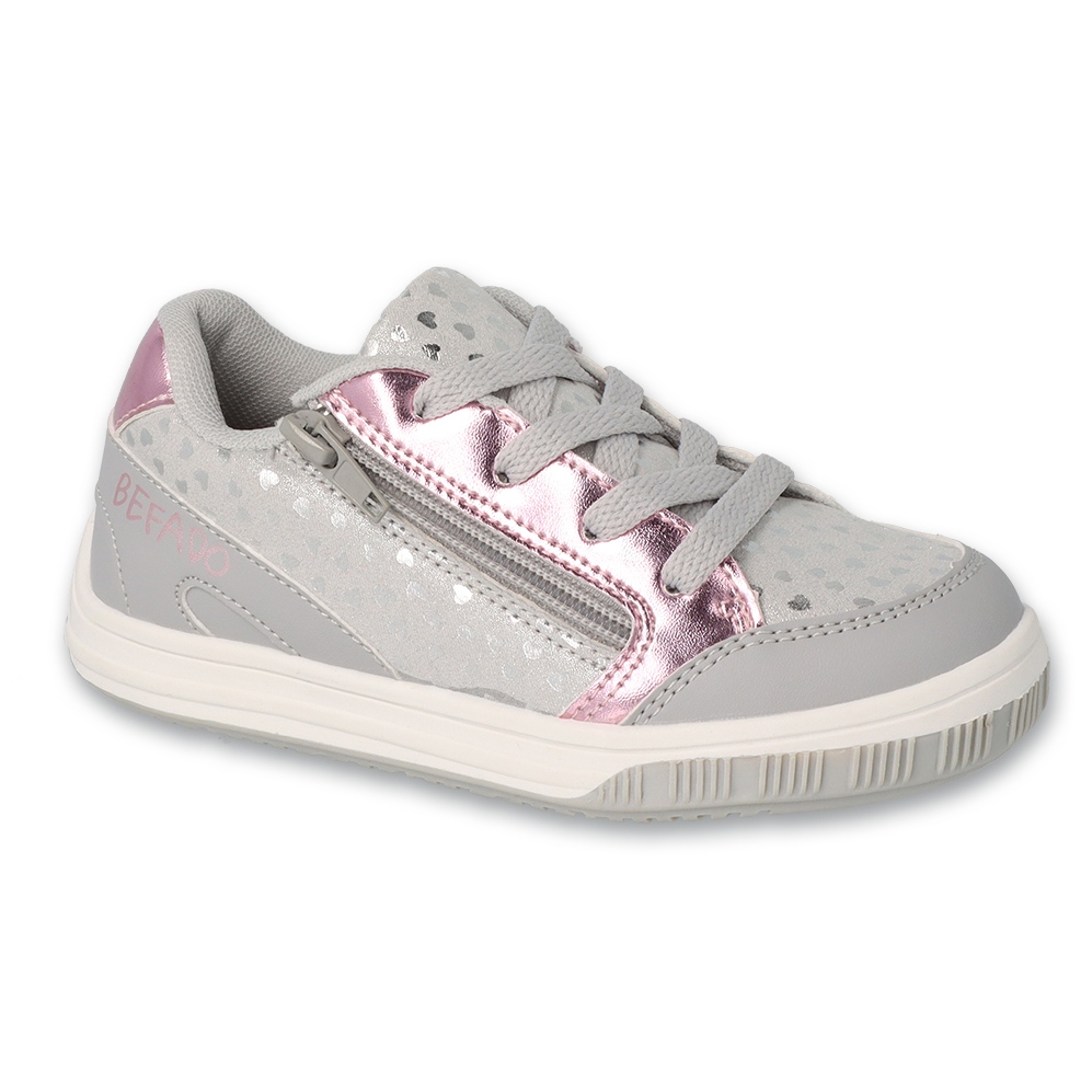 Befado obuwie dziecięce 514X003 w kolorze szarym to doskonały wybór dla aktywnych dziewczynek, które cenią sobie komfort oraz styl. Te sportowe buty wykonane są z wysokiej jakości skóry ekologicznej, co zapewnia trwałość oraz łatwość w utrzymaniu czystości. Szaro-fioletowa kolorystyka sprawia, że model ten jest nie tylko praktyczny, ale także atrakcyjny wizualnie.