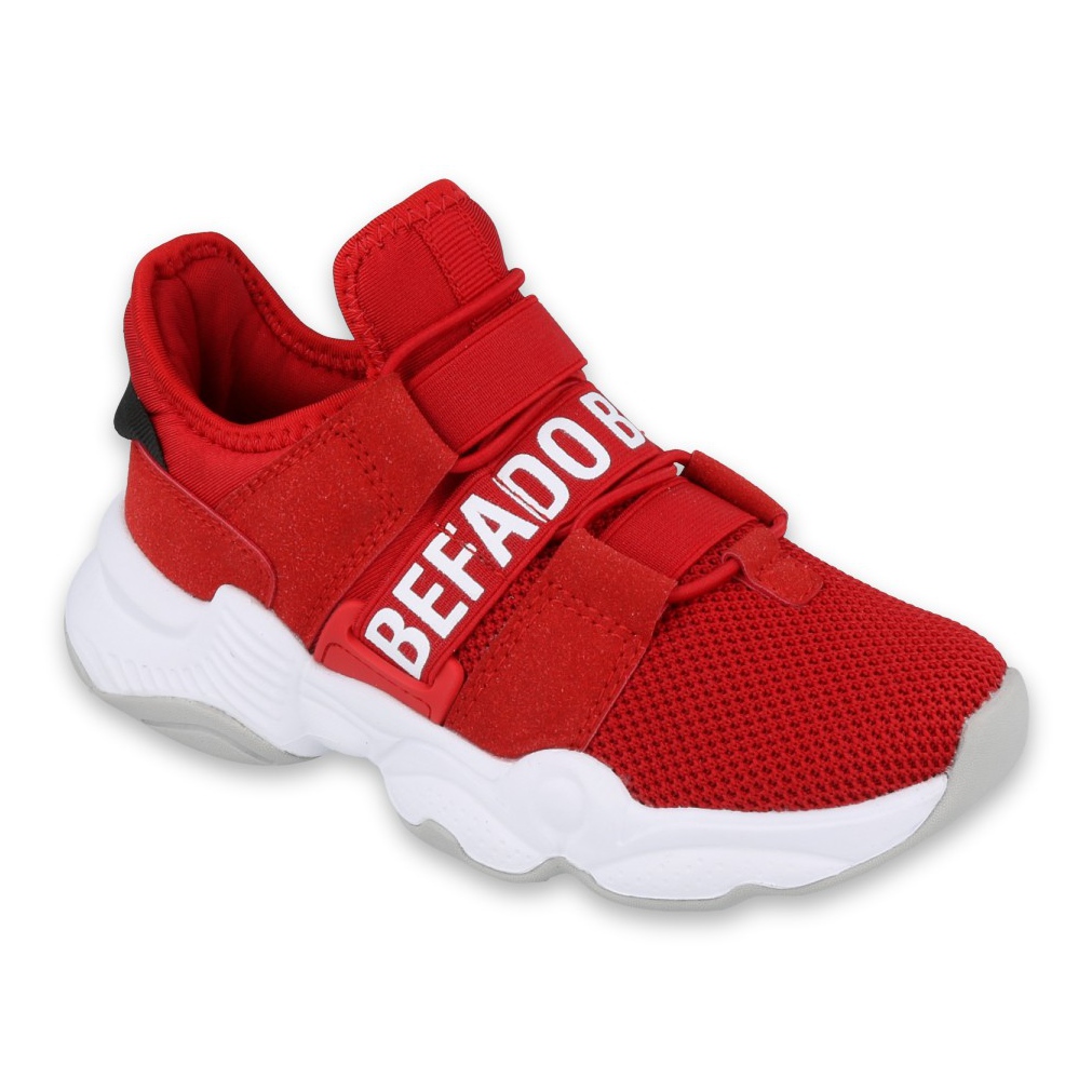 Obuwie dziecięce Befado 516Y064 w kolorze białym i czerwonym to idealny wybór dla aktywnych maluchów. Dzięki sportowemu designowi, te buty zapewniają doskonały komfort podczas chodzenia oraz wszelkich aktywności fizycznych. Wykonane z wysokiej jakości tkaniny, są lekkie i niezwykle wygodne, co sprawia, że dzieci z przyjemnością je noszą.