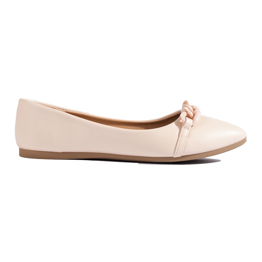 W. Potocki W. Potocki Beżowe baleriny damskie w szpic z łańcuszkiem Potocki beżowy