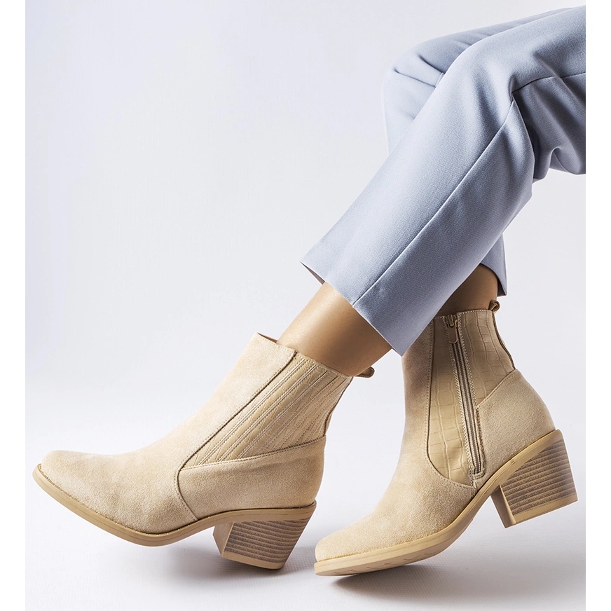 Inna marka Beżowe botki eko-zamsz na niskim słupku Sovere beżowy