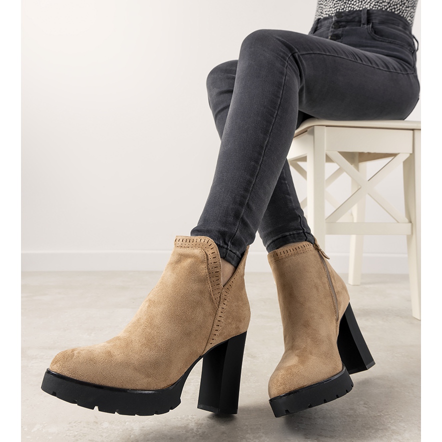 Szczegóły: Beżowe botki na słupku Bushido beżowy