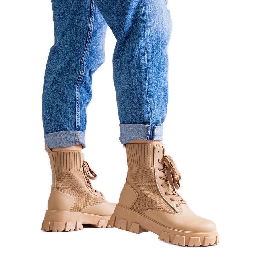Inna marka Beżowe botki z elastyczną cholewką Zogba beżowy