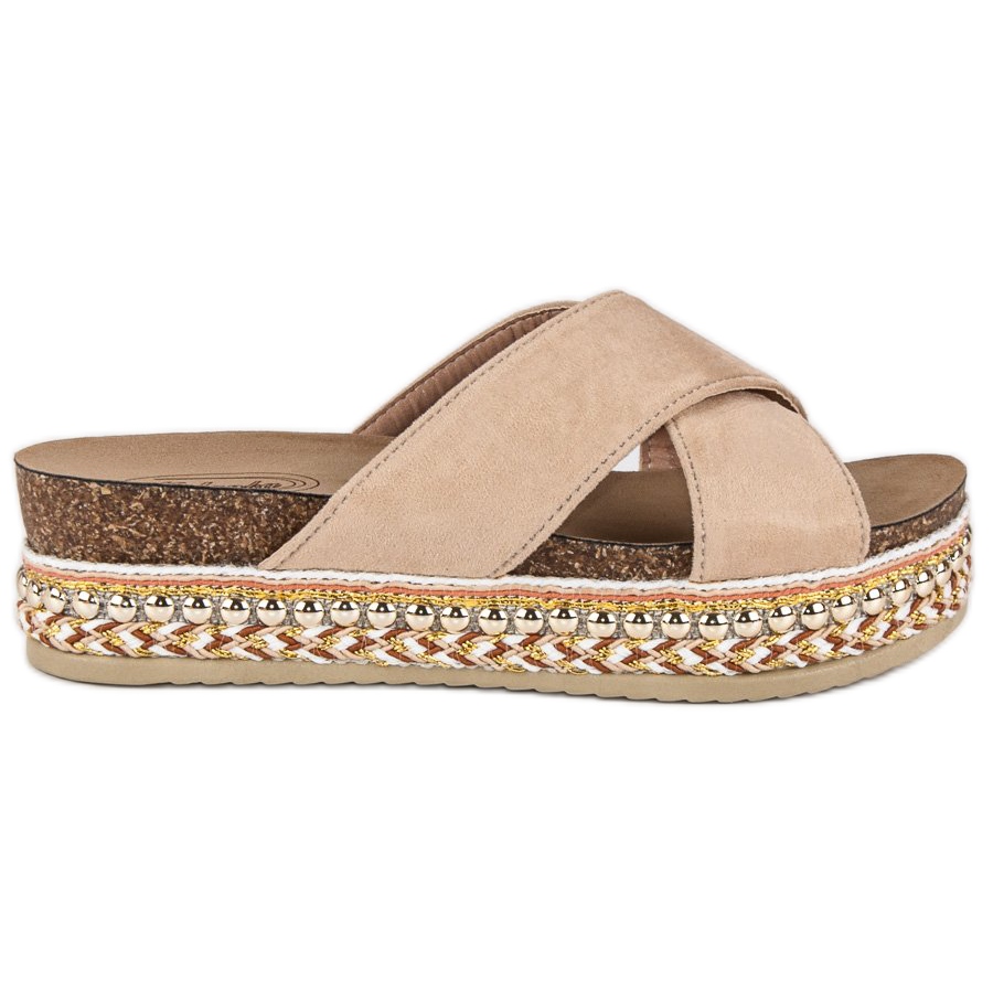 Inna marka Beżowe klapki na platformie beżowy