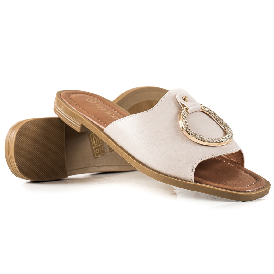 W. Potocki W. Potocki Beżowe klapki z ozdobą Potocki beżowy