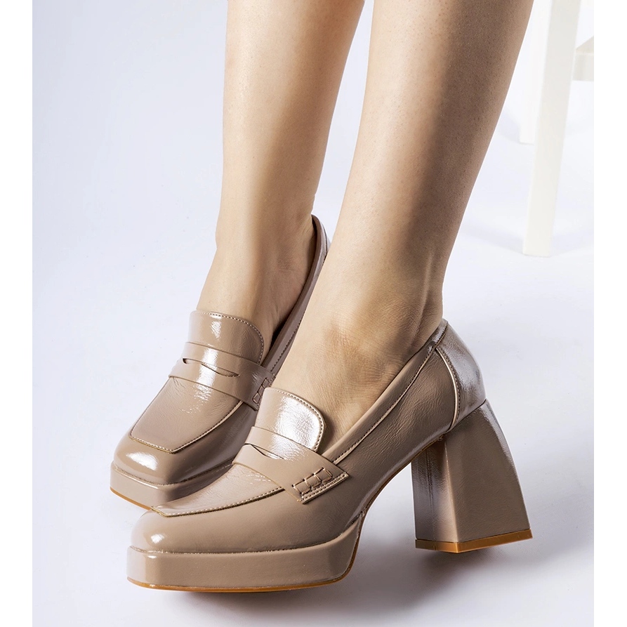 Szczegóły: Beżowe lakierowane czółenka na słupku West beżowy