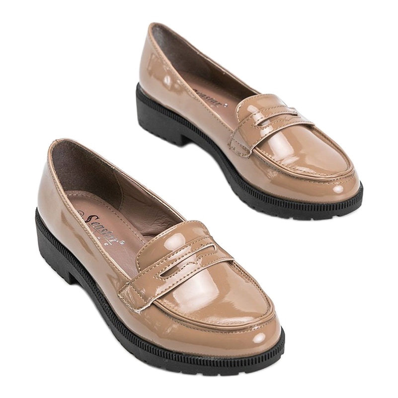 Szczegóły: Beżowe lakierowane mokasyny Sis beżowy