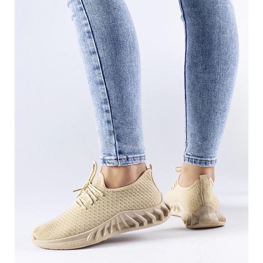 Dzięki gumowej podeszwie sneakersy są nie tylko trwałe, ale również oferują doskonałą przyczepność na różnych nawierzchniach. Okrągły nosek dodaje im subtelności, a beżowy kolor sprawia, że z łatwością dopasujesz je do wielu stylizacji – od sportowych po casualowe.