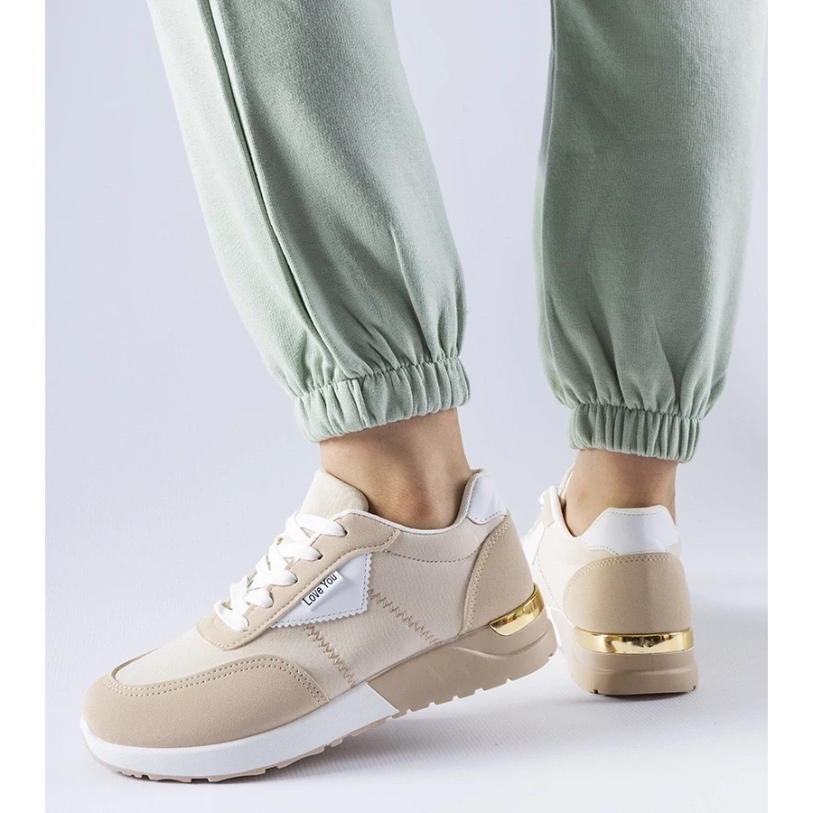 Sneakersy dostępne są w eleganckim beżowym kolorze, co sprawia, że łatwo przełamiesz je w swojej stylizacji, dopasowując do różnych outfitów. Dzięki swojej niskiej wysokości (8,5 cm) są idealnym wyborem na każdą okazję – od casualowych weekendów po bardziej formalne spotkania.