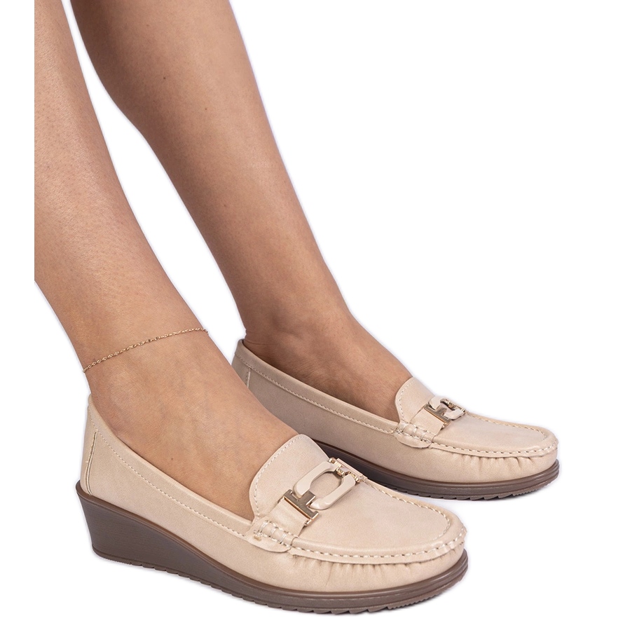 Szczegóły: Beżowe mokasyny damskie na koturnie z ekoskóry beżowy