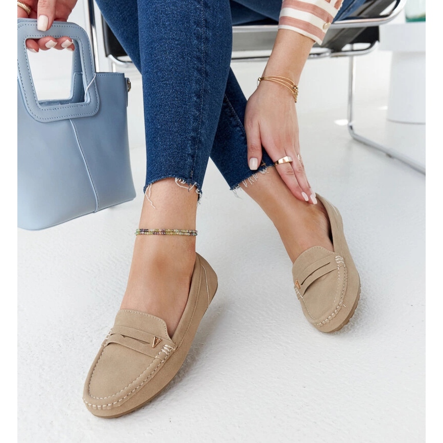 Szczegóły: Beżowe mokasyny o matowym wykończeniu Rubiania beżowy