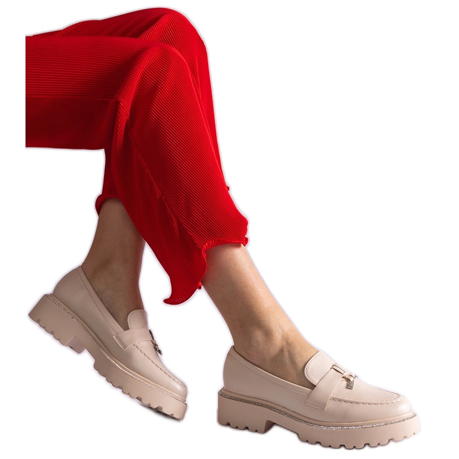 Inna marka Beżowe mokasyny z ekoskóry zdobione cyrkoniami beżowy