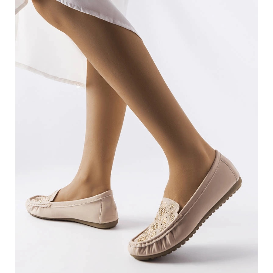 Beżowe mokasyny zdobione cyrkoniami Gamache — model TY-80