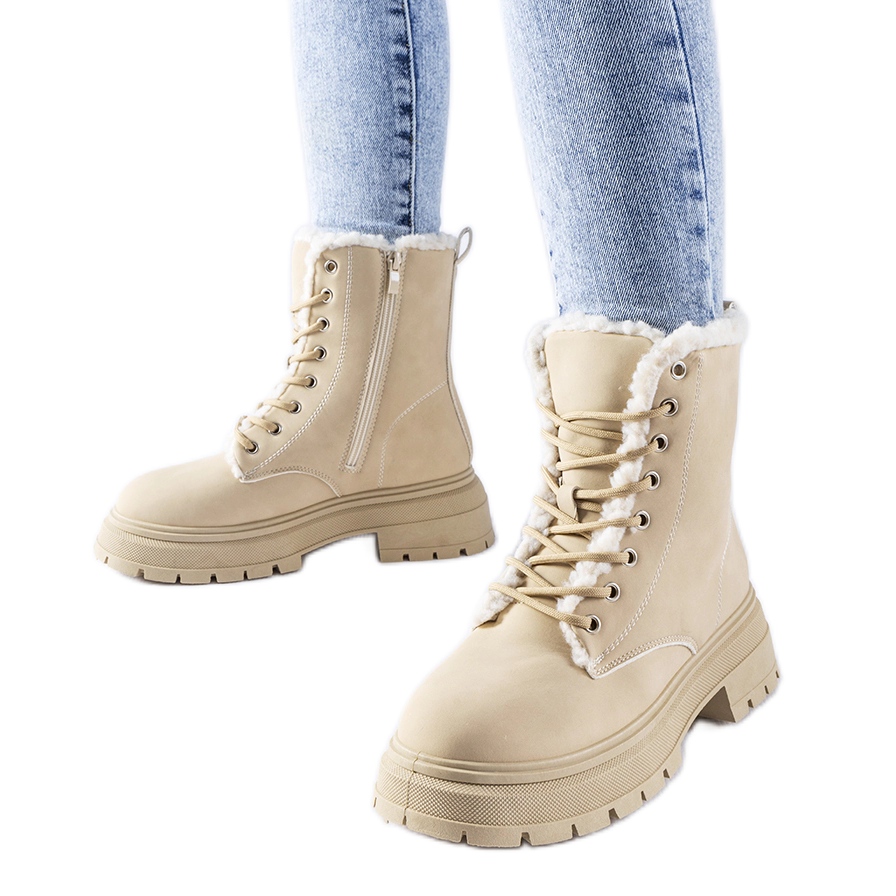 Beżowe ocieplane traperki Tadasuni (model F-307)