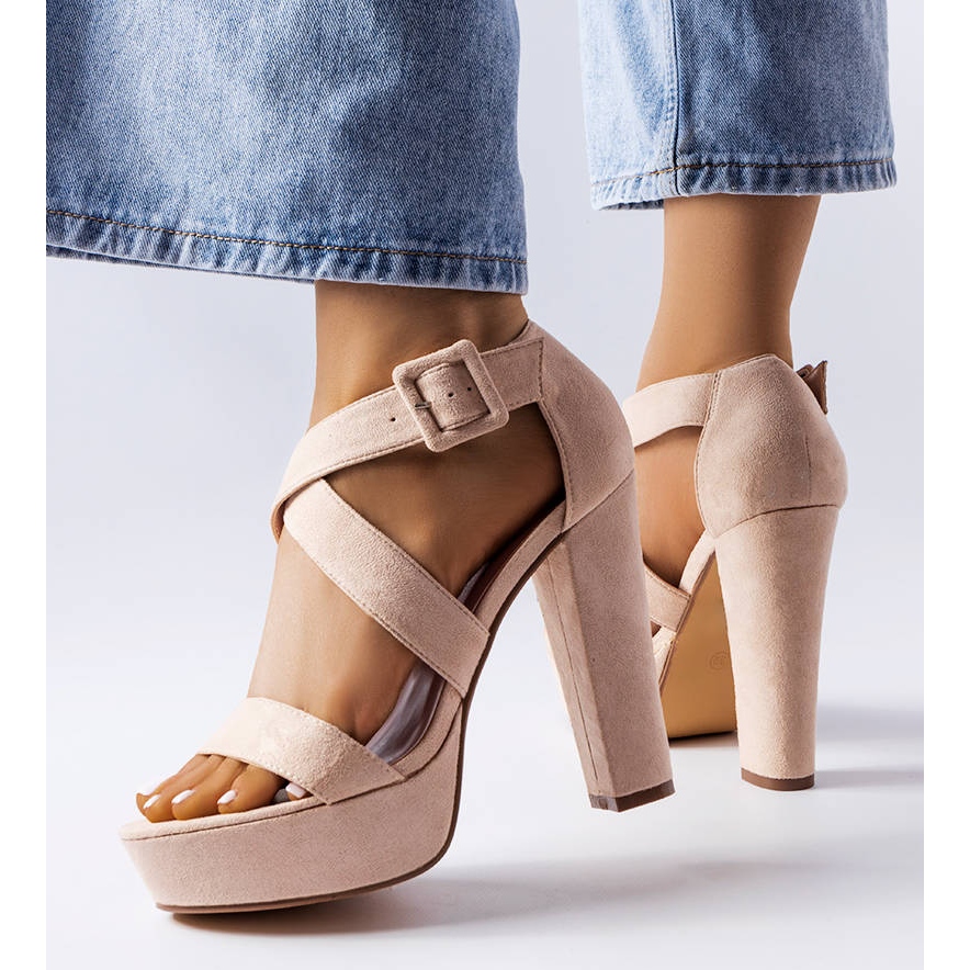 Inna marka Beżowe sandały na słupku Sevier beżowy