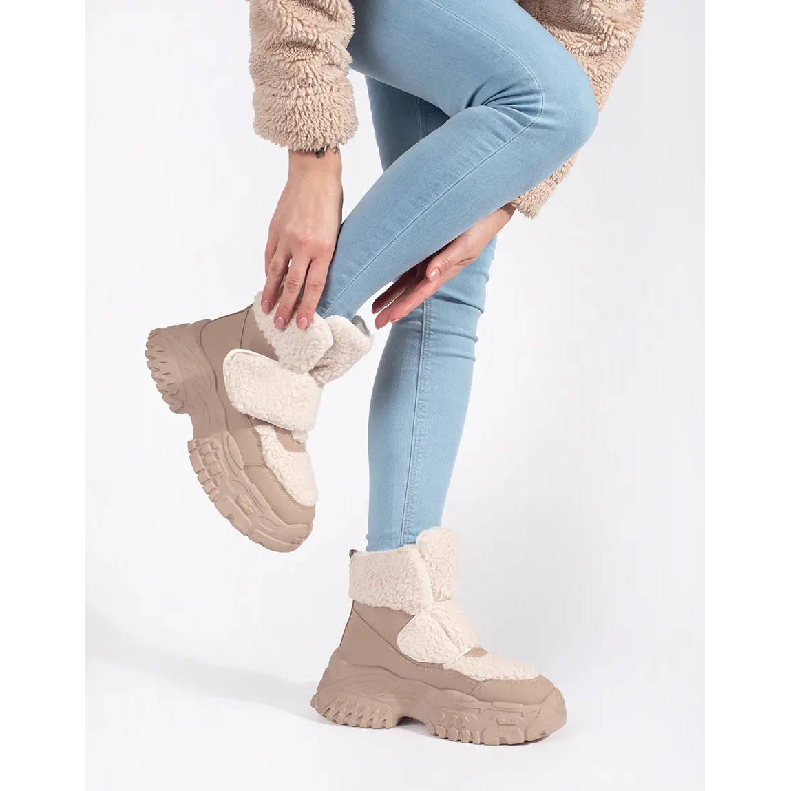 Szczegóły: Seastar Beżowe śniegowce na platformie z futerkiem typu baranek beżowy