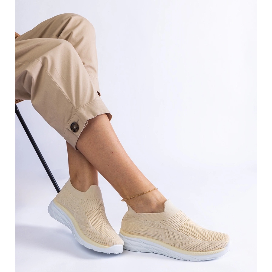 Szczegóły: Beżowe wsuwane sneakersy sportowe beżowy