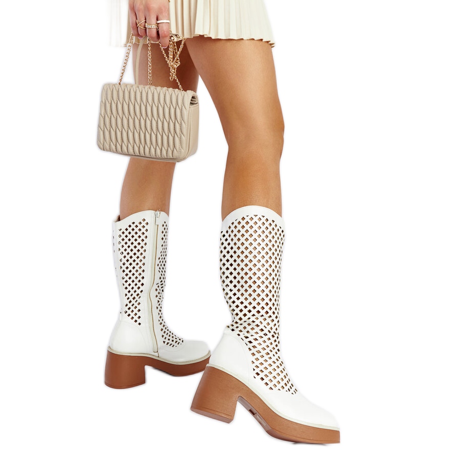 Inna marka Białe ażurowe kozaki na słupku Anahola
