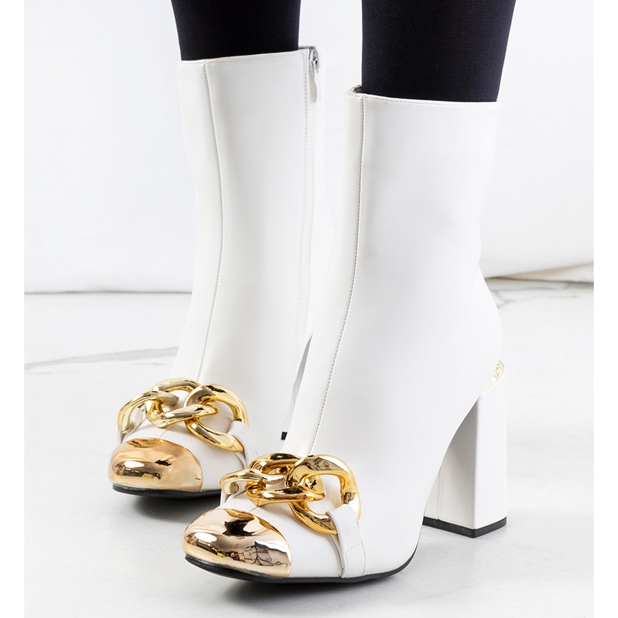 Szczegóły: Białe botki na słupku Engi