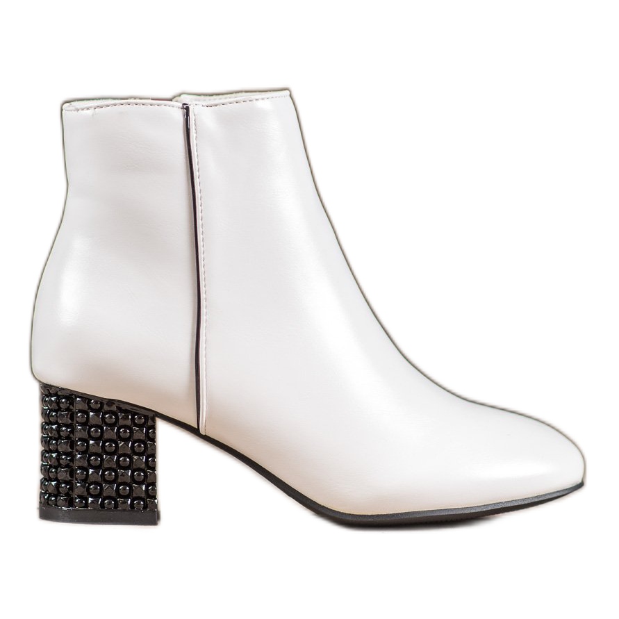 SHELOVET SHELOVET Białe Botki Z Ozdobnym Obcasem