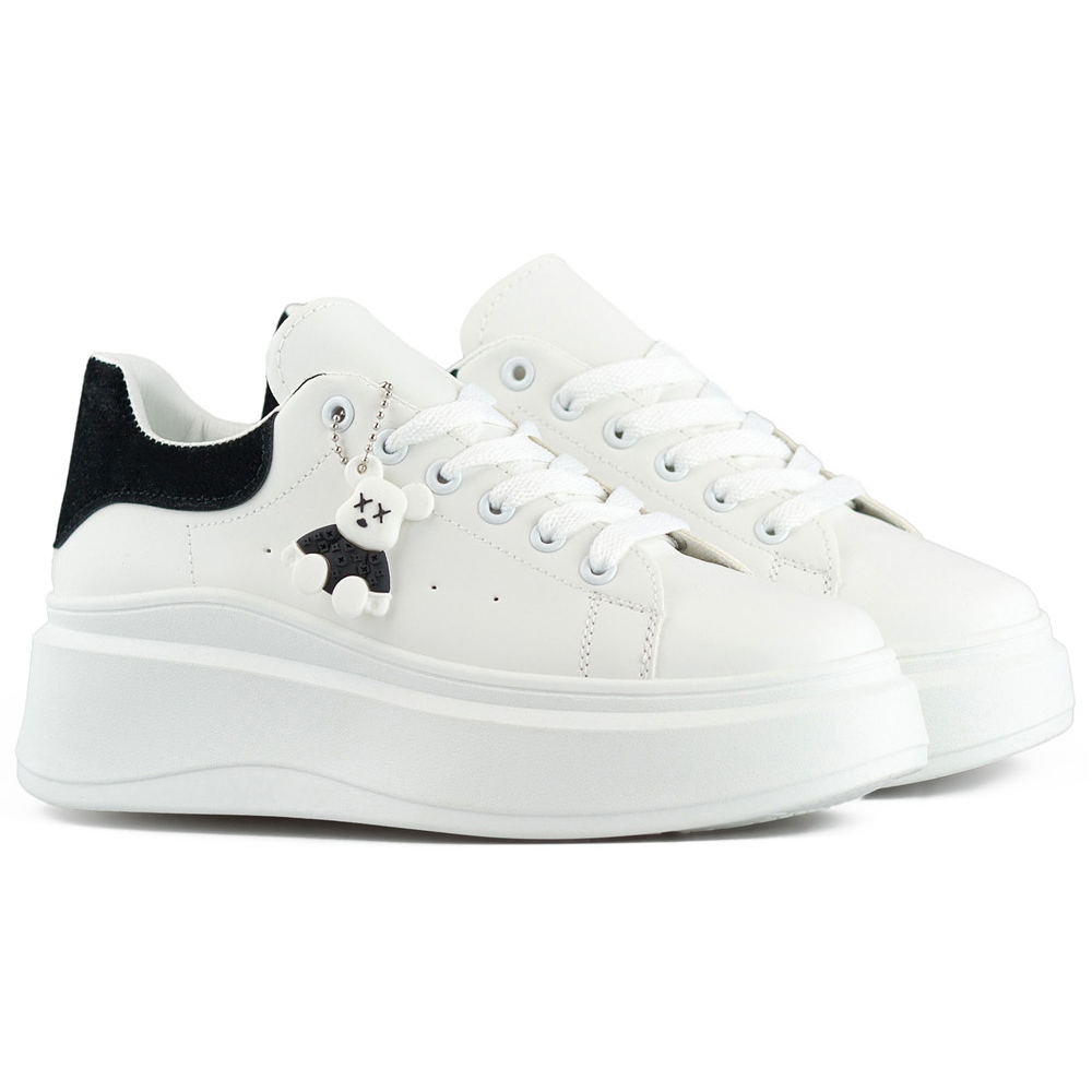 Białe buty sportowe na grubej podeszwie z misiem black