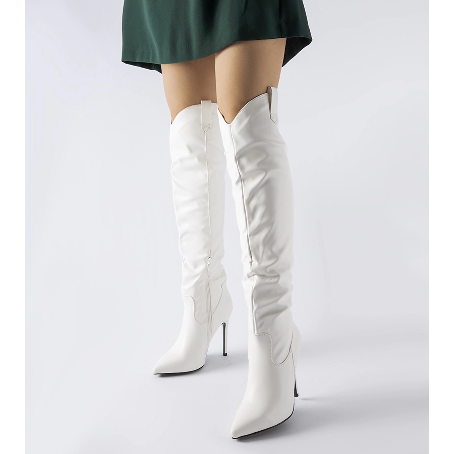Inna marka Białe długie kozaki na wysokiej szpilce Cerati