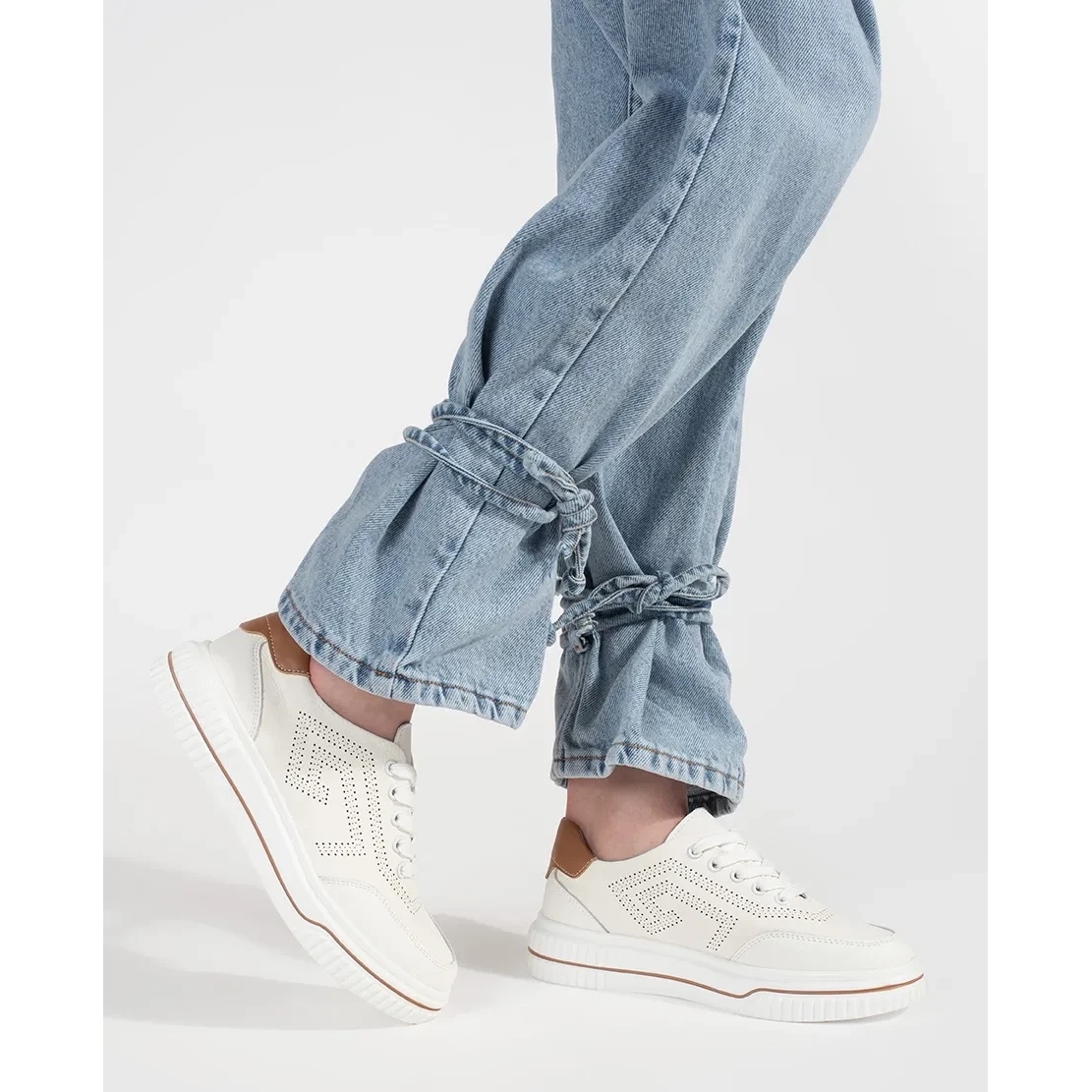 Szczegóły: Goodin Białe dziurkowane skórzane sneakersy