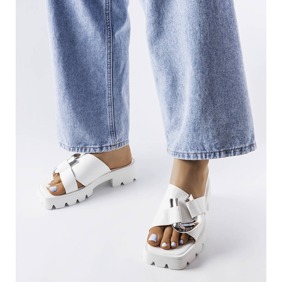 Inna marka Białe klapki na traktorowej podeszwie Carceri