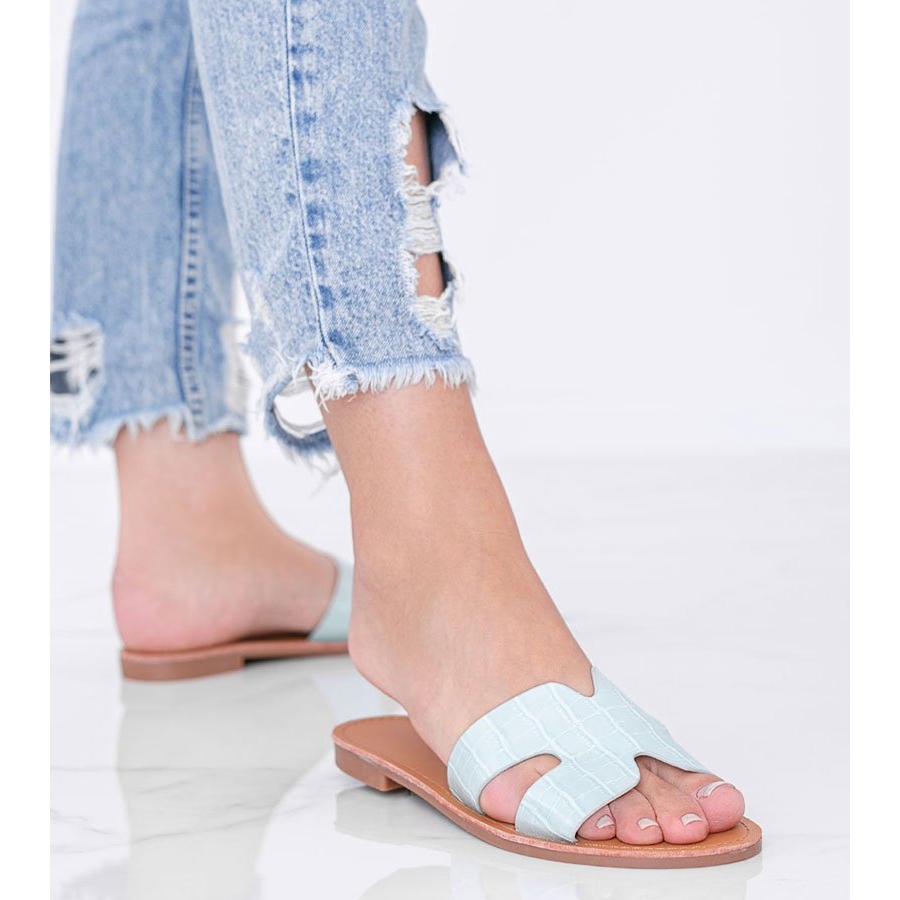 Inna marka Białe klapki wzór skóry krokodyla Phoenix zielone