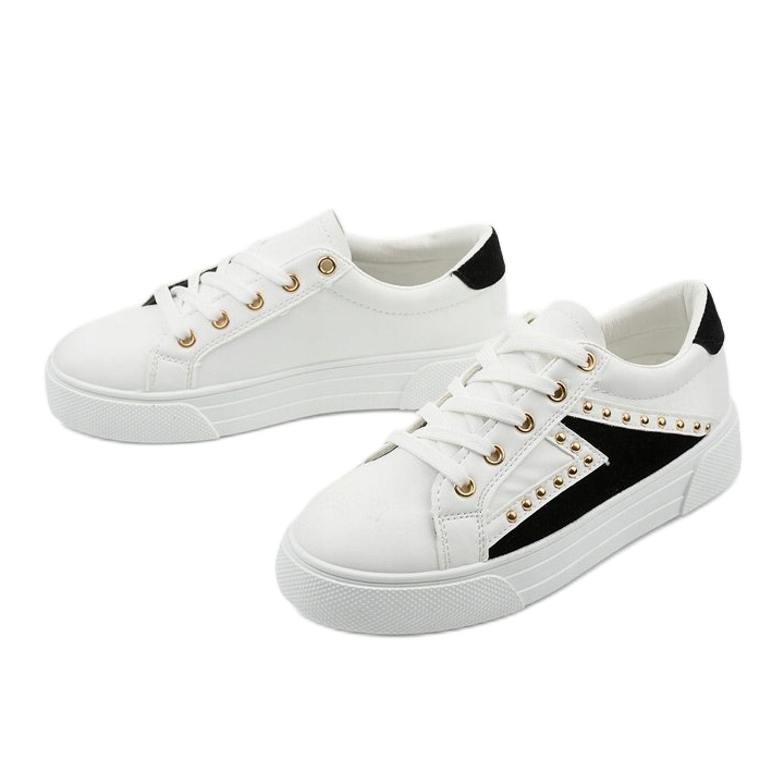 Białe Klasyczne Tenisówki z Dżetami A88-69 Czarne – Odśwież Swój Styl