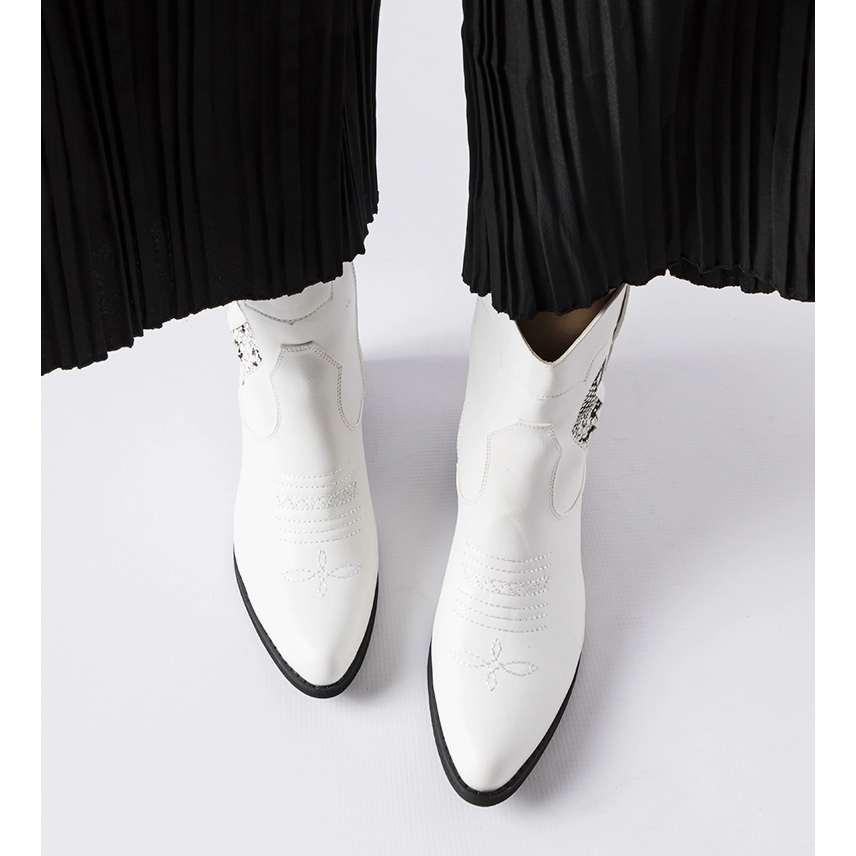 Szczegóły: Białe kowbojki na obcasie Henriette