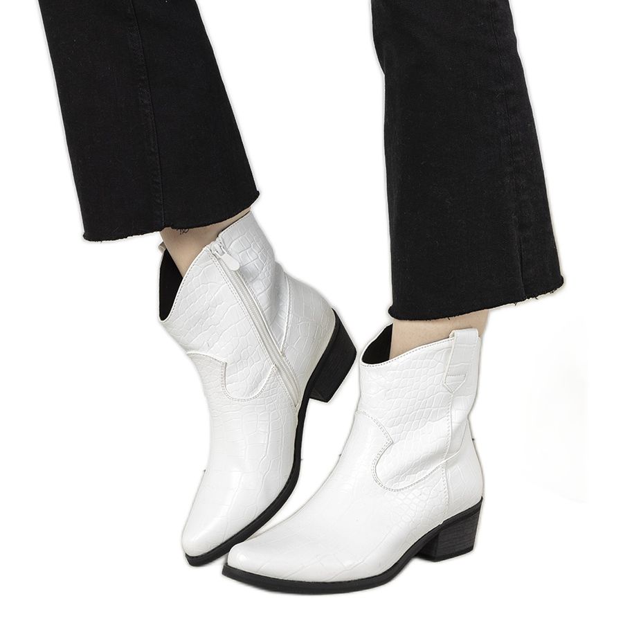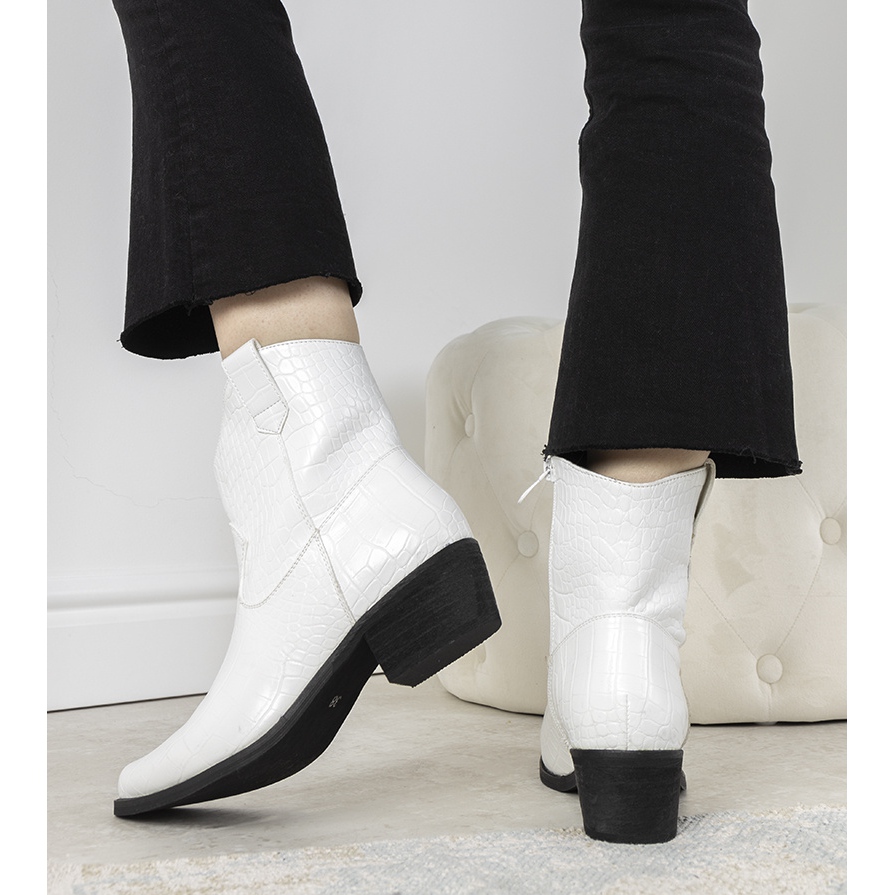 Szczegóły: Białe kowbojki w motywie skóry krokodyla Aurore