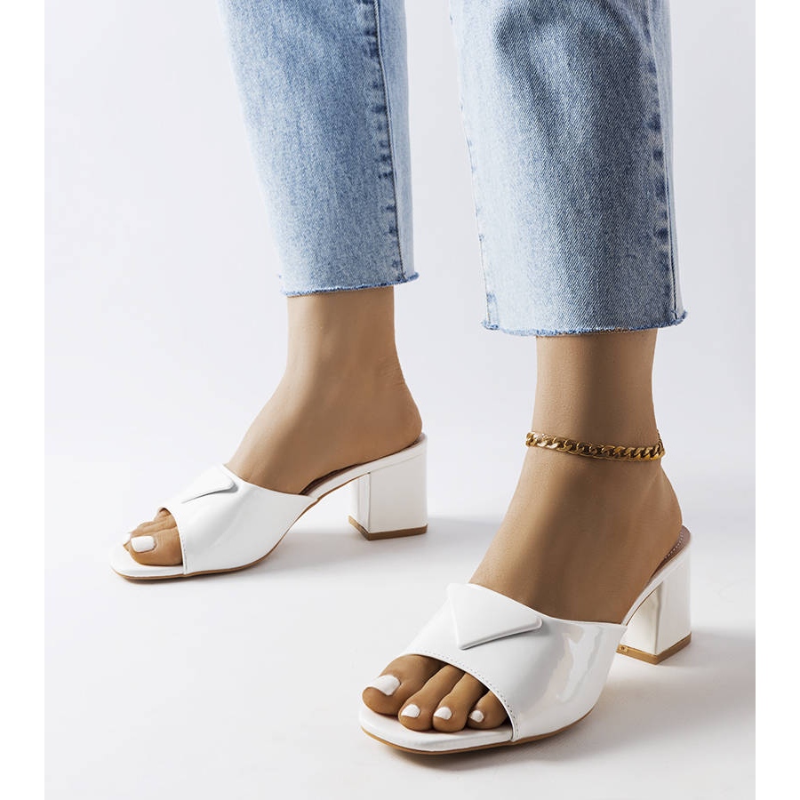 Poznaj białe lakierowane klapki na słupku Branch – must-have każdej modnej kobiety, która poszukuje elegancji i komfortu na letnie dni. Te stylowe klapki to połączenie nowoczesnego designu i funkcjonalności. Wykonane z ekologicznej skóry, pokrytej efektownym lakierem, przyciągają wzrok i dodają świeżości każdej stylizacji.