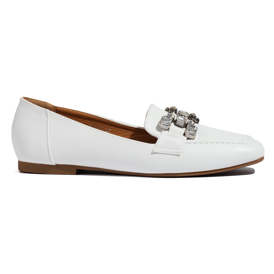 SHELOVET Białe mokasyny damskie z ozdobą Shelovet