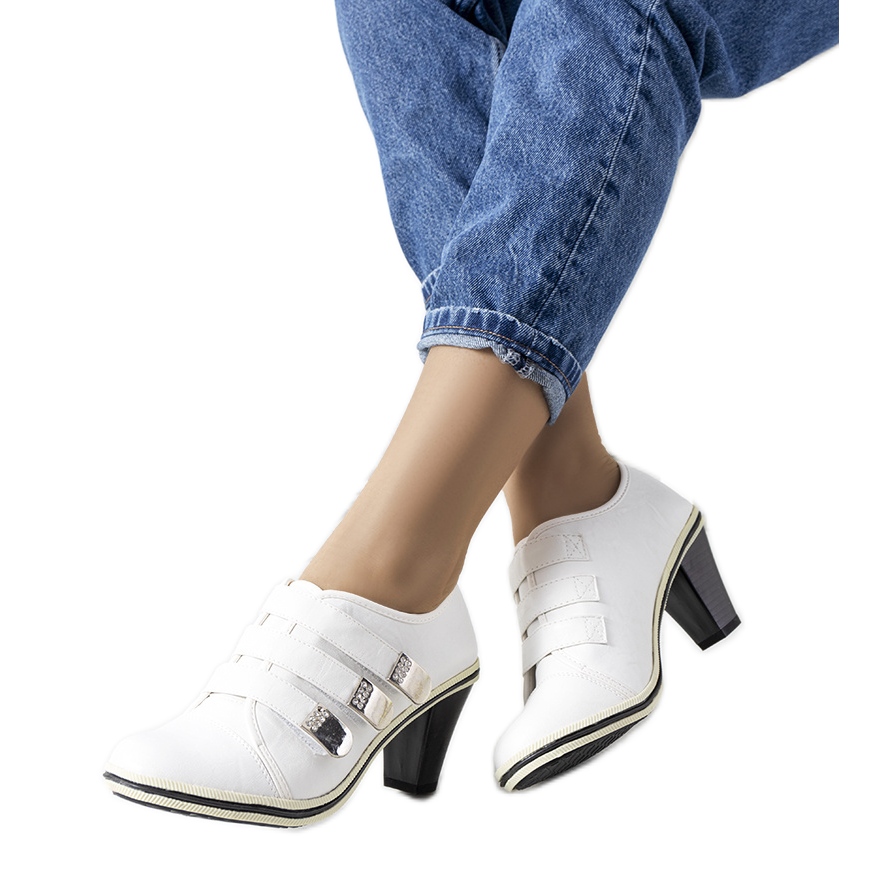 Białe półbuty na słupku Payla — elegancja i wygoda na co dzień