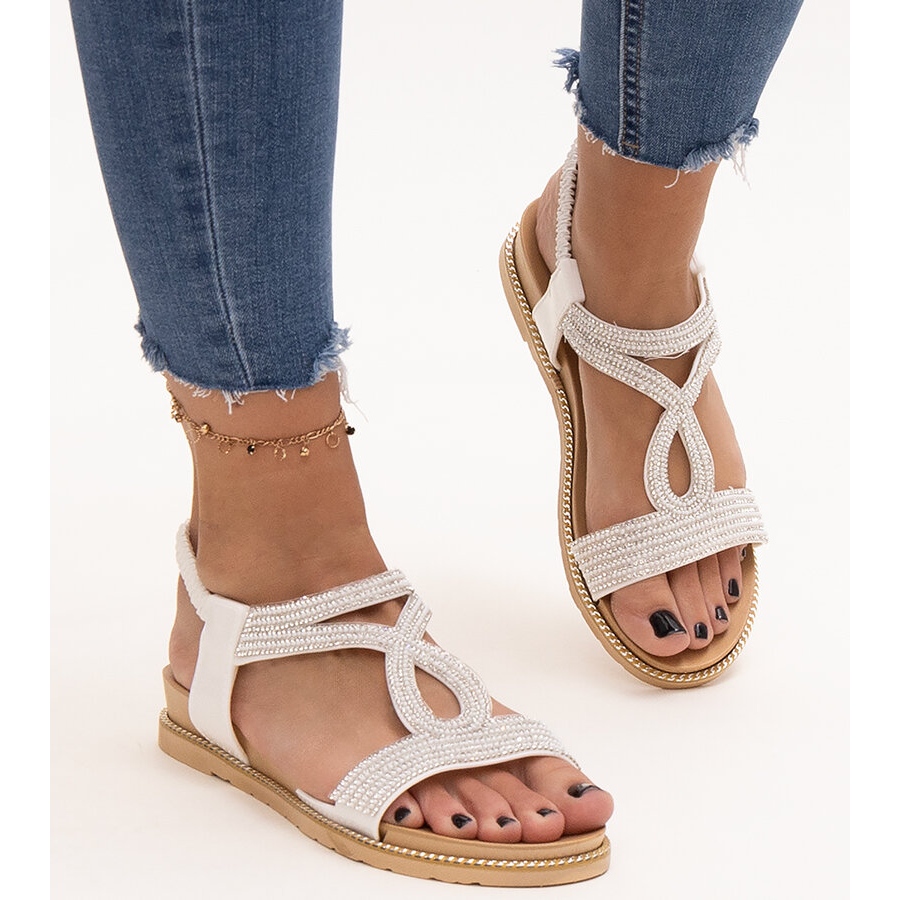 Inna marka Białe sandałki zdobione cyrkoniami Detila