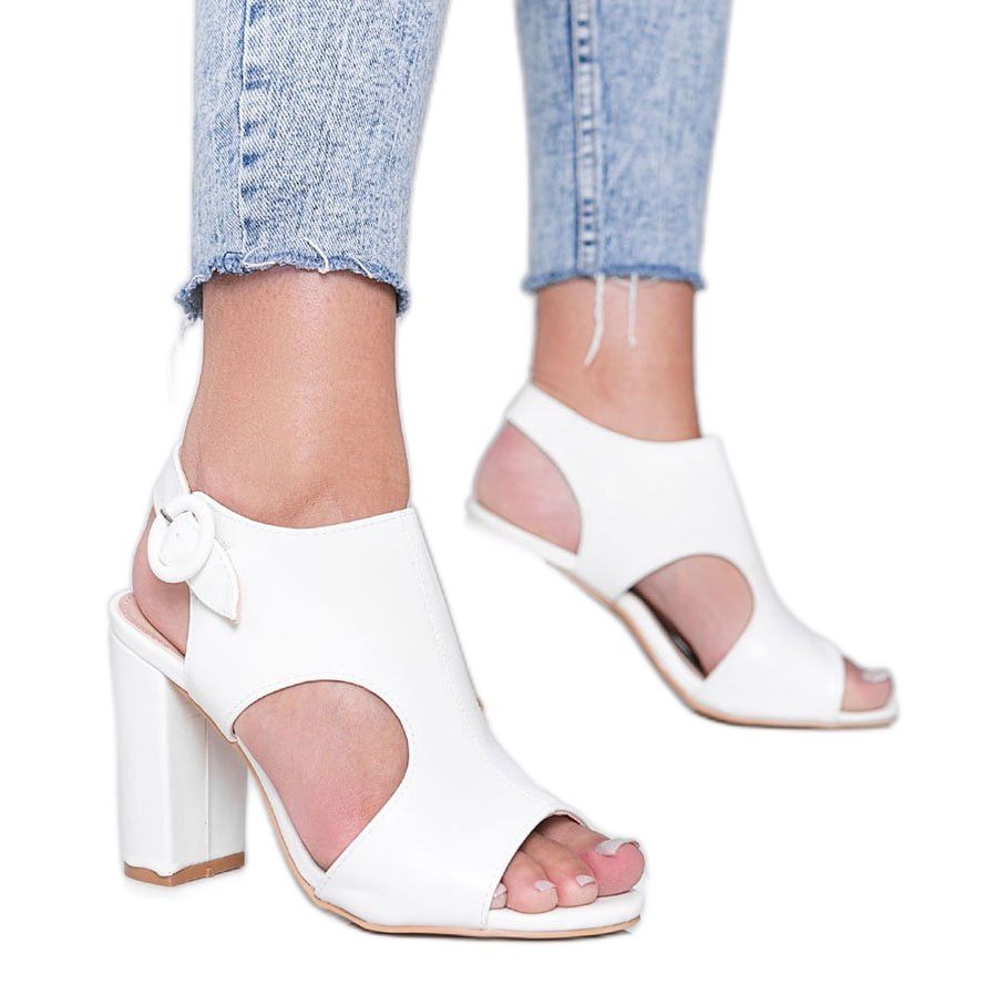 Szczegóły: Białe sandały na słupku Candy Style