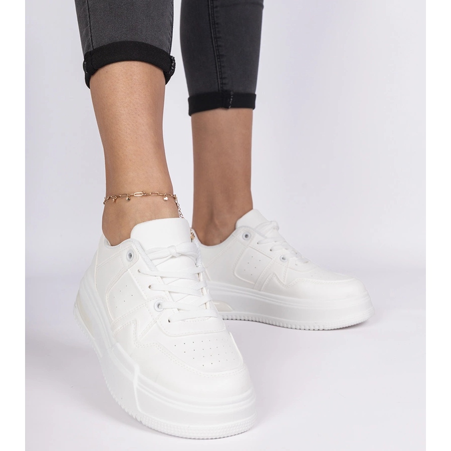 Szczegóły: Białe sneakersy damskie na grubej podeszwie