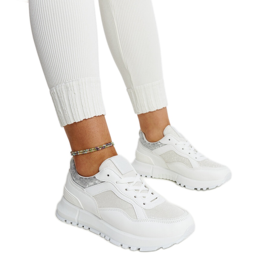 Inna marka Białe sneakersy na platformie z brokatem Evelia