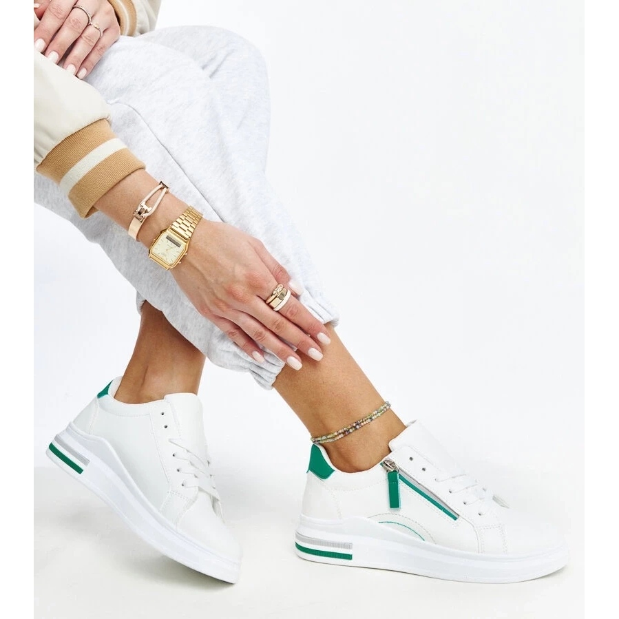 D/GMR D/GMR Białe sneakersy z zielonymi wstawkami Anaunia
