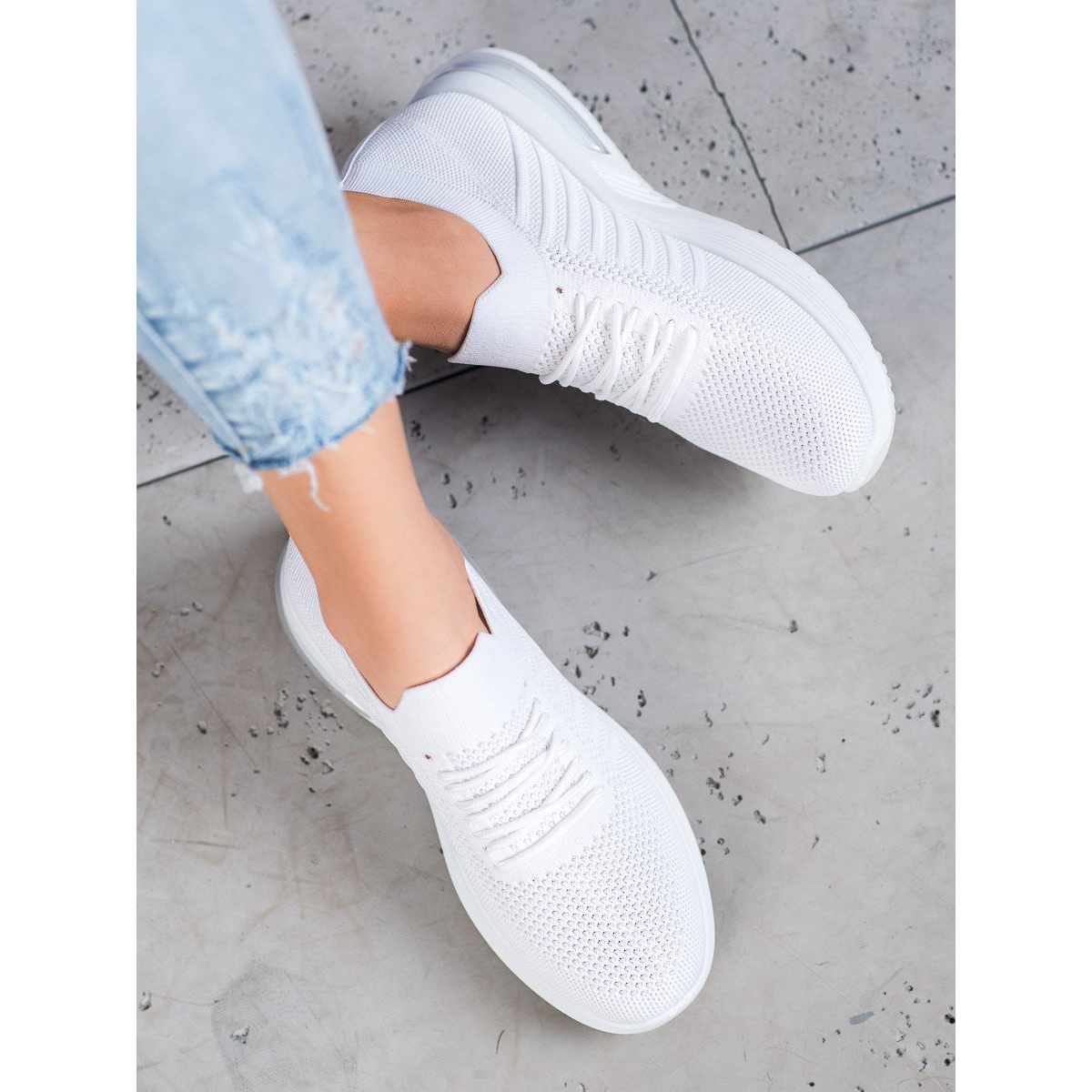 Szczegóły: SHELOVET Białe Tekstylne Buty Na Platformie