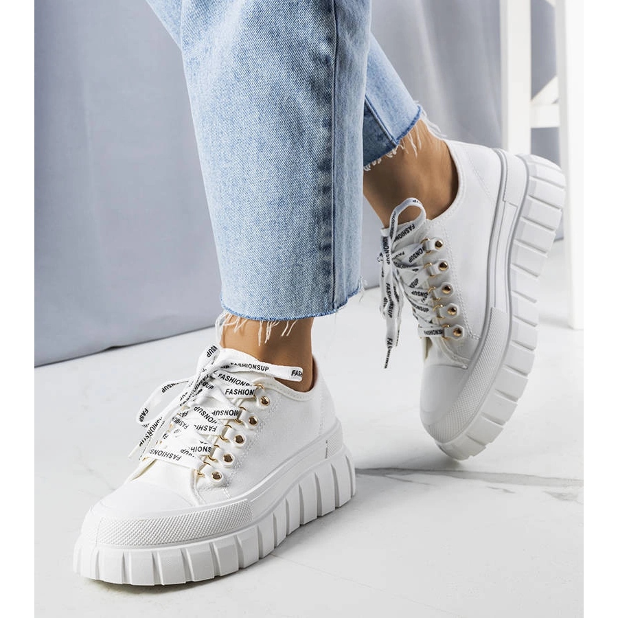 Białe trampki na platformie Toni to doskonała propozycja dla kobiet, które pragną połączyć wygodę z modnym stylem. Wykonane z wysokiej jakości tkaniny, te trampki wyróżniają się solidnym wykończeniem oraz eleganckim designem. Model VO-YD226-01 wiązany jest na płaskie, logowane sznurowadła, co dodaje im charakteru i sprawia, że są niezwykle funkcjonalne.