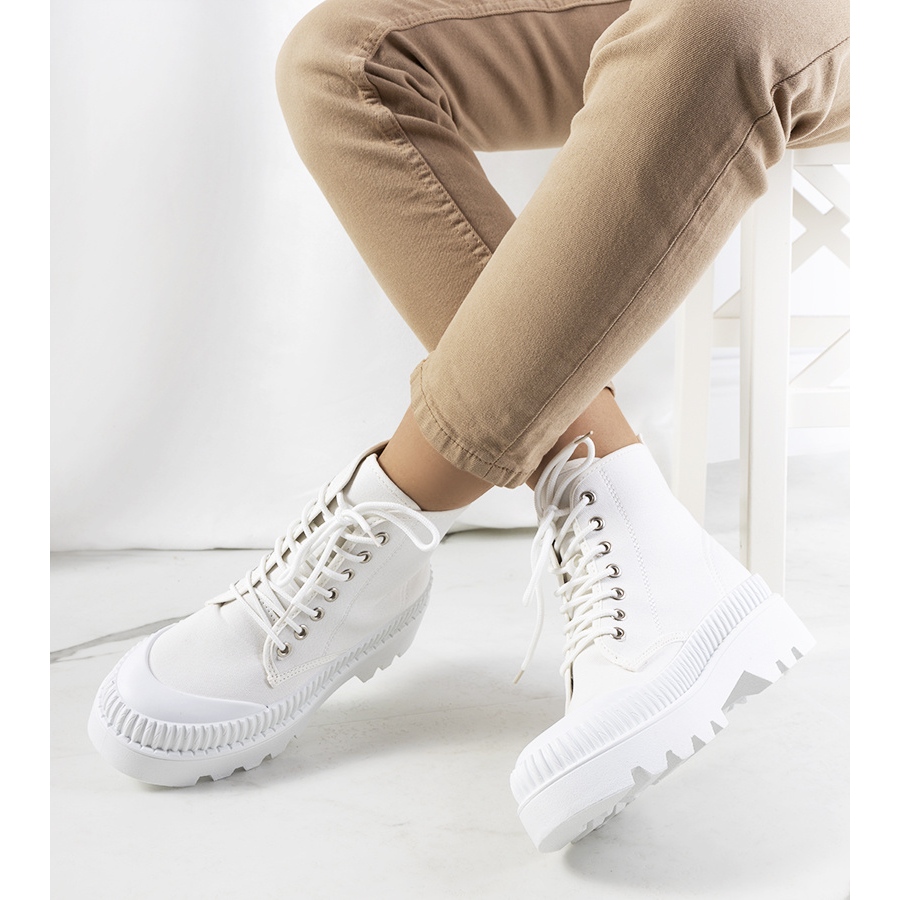 Przedstawiamy białe trampki Roxo – idealne dla kobiet, które pragną połączyć modę z wygodą! Model ten wyróżnia się wysoką traktorową podeszwą, która nie tylko dodaje charakteru, ale także zapewnia doskonałą przyczepność i stabilność. Trampki zostały wykonane z wysokiej jakości tkaniny, co gwarantuje komfort noszenia na co dzień.